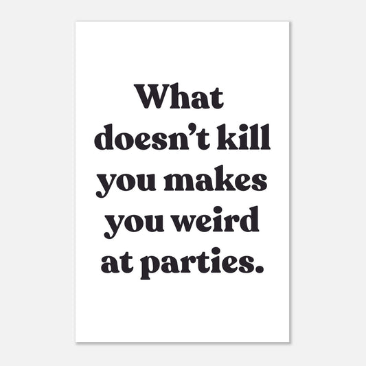 What doesn't kill you makes you weird at parties - Black on White - Wall art