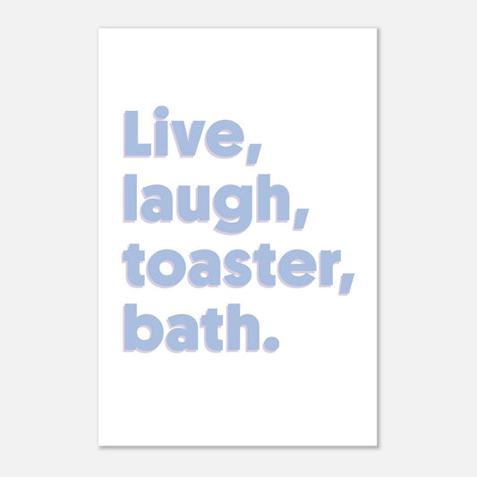 Live, laugh, toaster, bath - Blue on White - Wall art