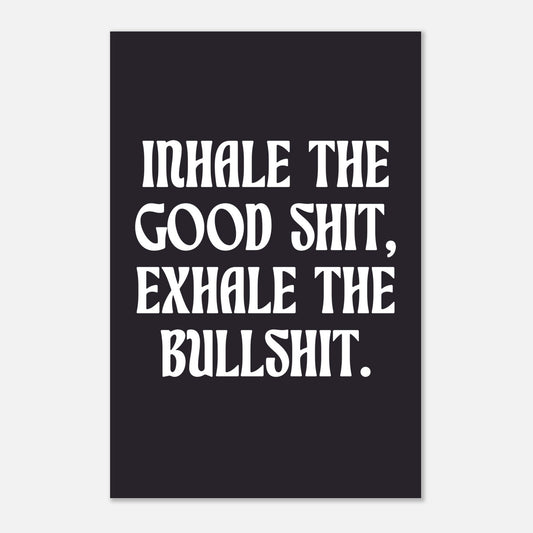 Inhale the good shit, exhale the bullshit - White on Black - Wall art